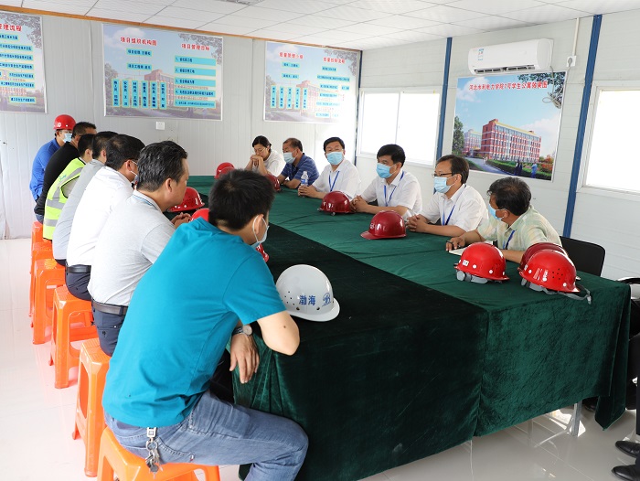 我校7号学生公寓即将全面封顶,为确保工程质量和进度,6月23日上午8:00,学校党委书记陈进杰、校长向辉、副校长于振海以及后勤管理处、党政办、宣传部相关部门领导到7号学生公寓施工现场进行调研,并为奋战在一线的工...