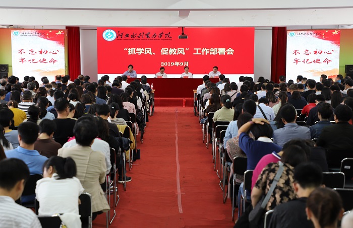 9月19日下午,我校“抓学风、促教风”工作部署会在启智楼会议室召开。校长向辉、副校长于振海、张效松、王建明,学校全体教师、科级以上干部以及与教学相关的教职工400余人参加会议。会议由副校长于振海主持。 会上,...